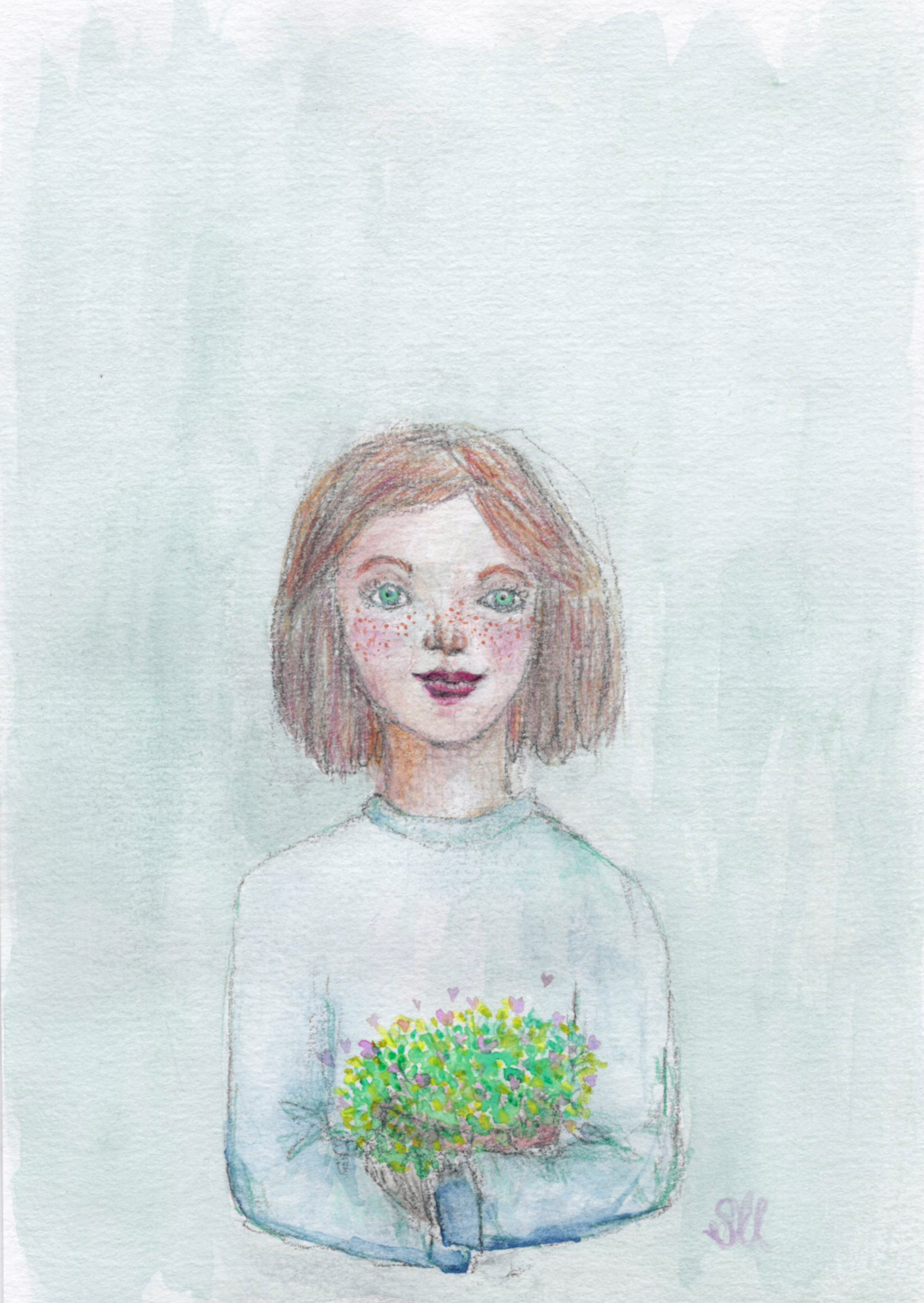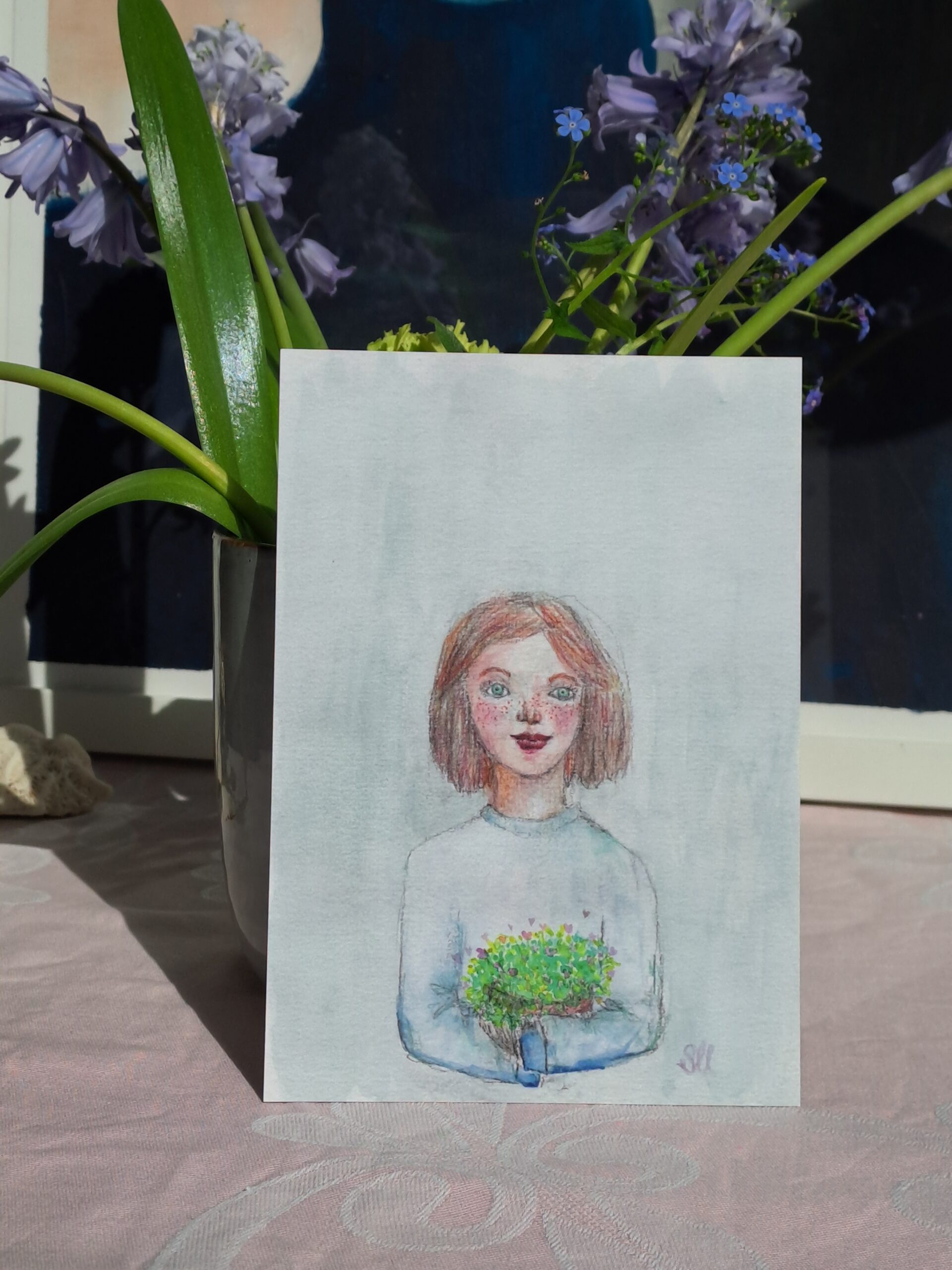 Diese besondere Postkarte ist ein Print meines handgemalten Originalbildes “inner garden” 2026: Aquarell und Aquarell-Buntstifte auf Papier