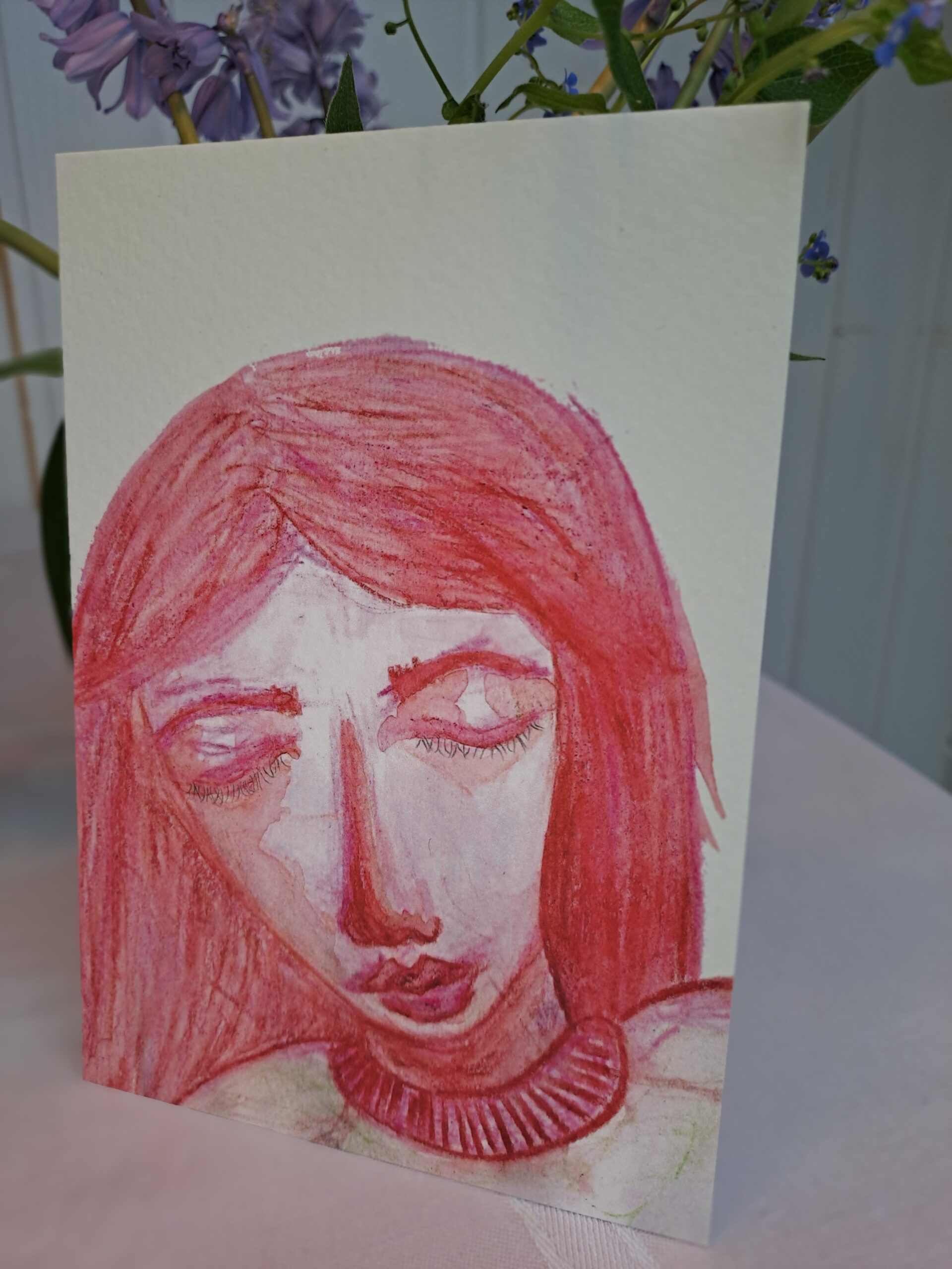 Diese besondere Postkarte ist ein Print meines handgemalten Originalbildes “just be you” von 2025: Aquarell Wachspastelle und Bleistift auf Papier